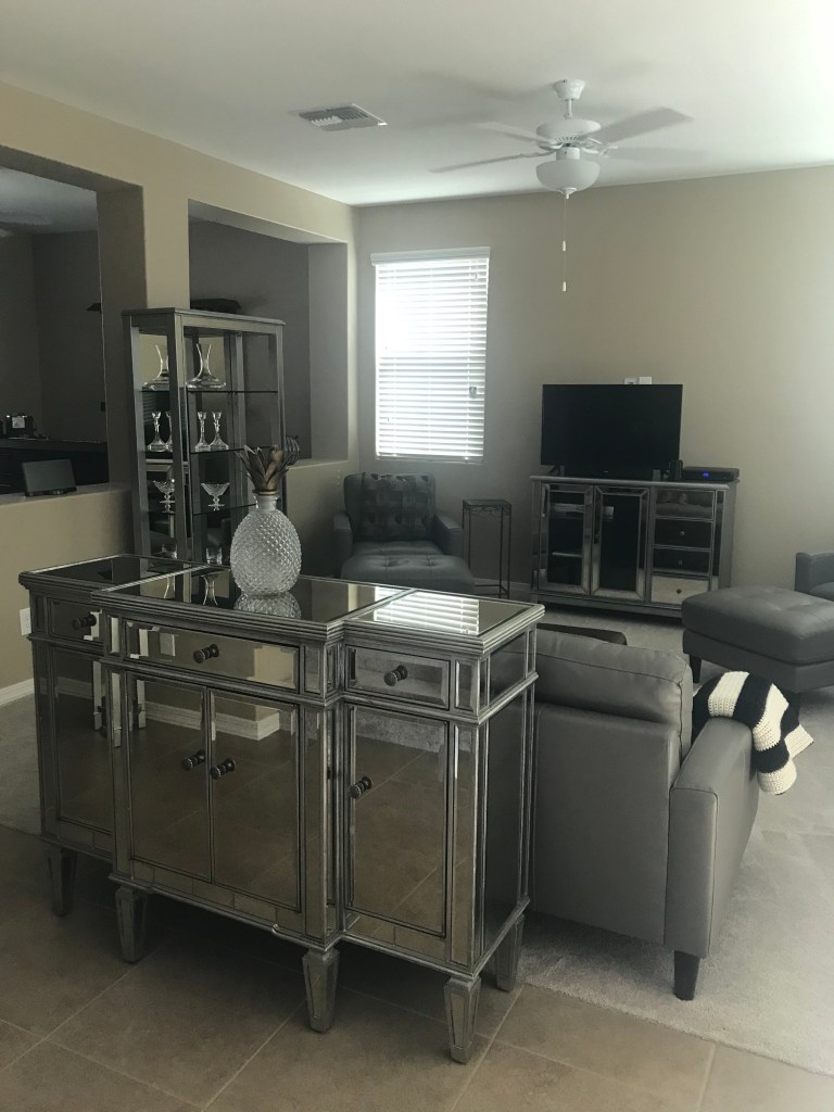But as time has gone on, I’ve evolved into a mix of Hollywood Regency and Minimalist. I still love the glitz and glamour of the furniture, but I have held back on flashy wall mirrors and velvet finishes.
