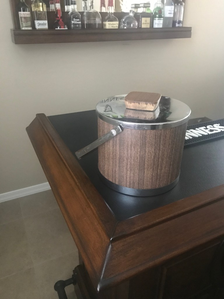 Then one day we shopped around at a community sale in my parents’ neighborhood, and there it was: the ice bucket we had envisioned for the bar room.